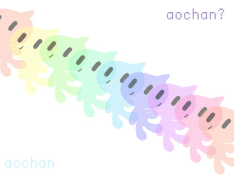 いろんなアオチャン。カラフルアオチャン。こんなアオチャンいたら、マイニチもっと楽しくなるだろな。 | |