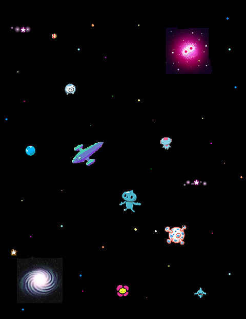 みんなで宇宙旅行に行っているところを書きました。 | |