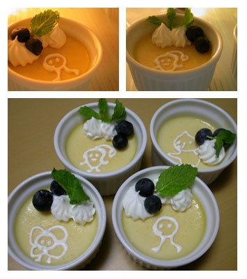 プリンを作って 冷蔵庫に入れておいたら 冷蔵庫にいたちゃいリアンが プリンに乗っていました |