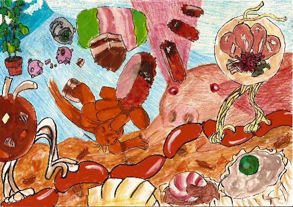 サチは夢の中でもブタ料理といっしょ。